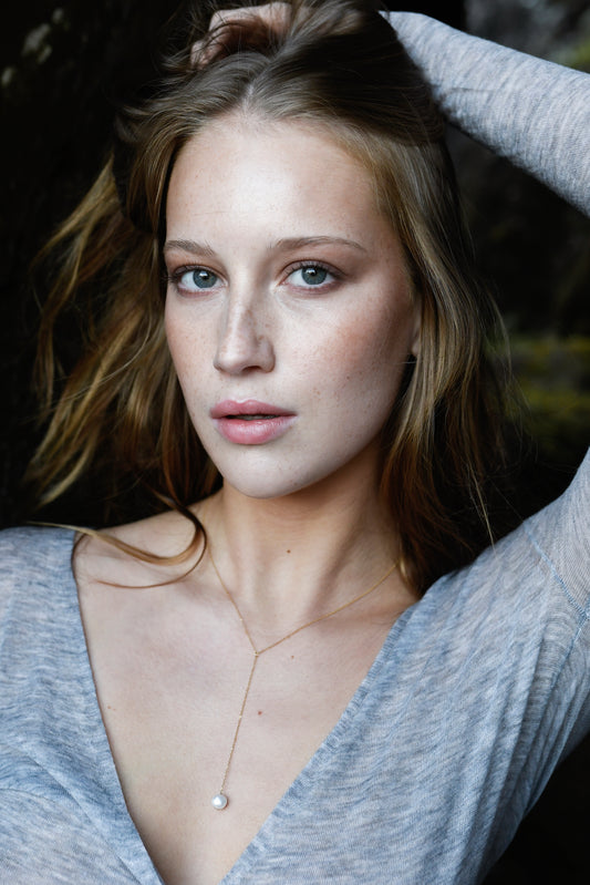 Gold Pearl Lariat Necklace